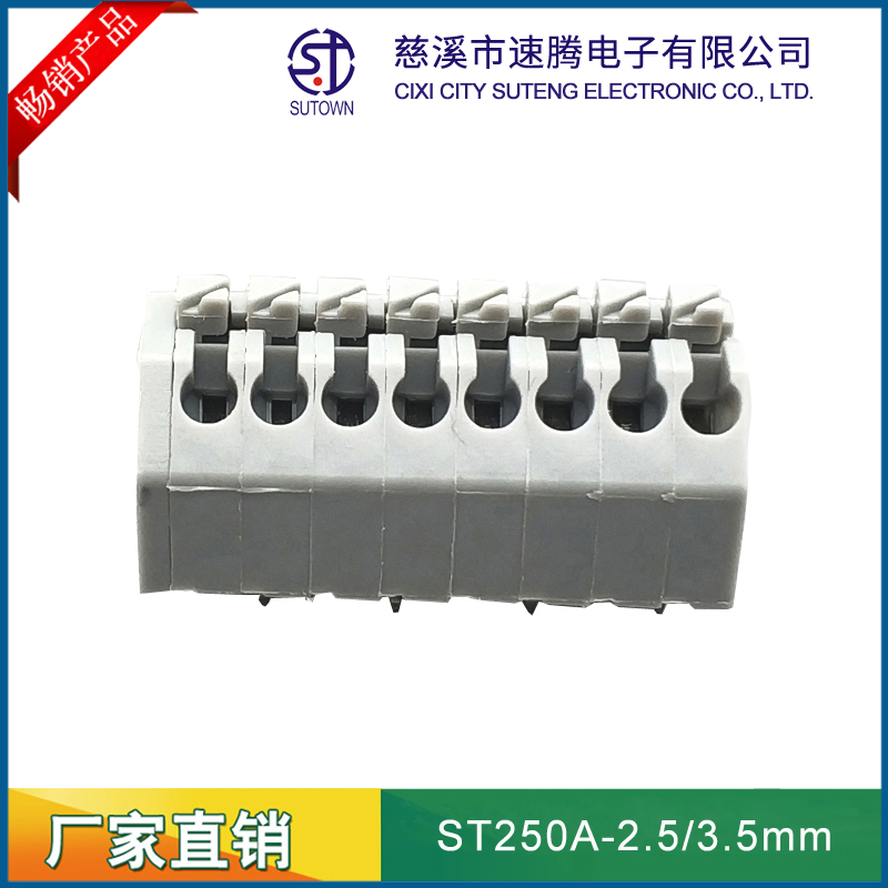 慈溪市速騰電子有限公司,是專業(yè)生接線端子生產(chǎn)廠家, 主要產(chǎn)品包話:貫通式接線端子;LED燈具端子;貼片端子;快速接線端子;插拔式接線端子;柵欄式接線端子;PCB接線端子;免螺絲式接線端子;LED電源接線端子;電氣接線端子;各類接線端子臺(tái);歐式插座;撥碼開關(guān);等各類連接器。