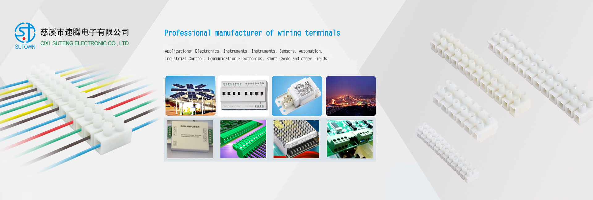 Cixi Suteng Electronic CO.,LTD.,It is a professional manufacturer of wiring terminals. The main products include: through terminal; LED lamp terminal; patch terminal; fast terminal; plug-in terminal; fence terminal; PCB terminal; screw-free terminal; LED power terminal; electrical terminal; all kinds of terminal; European socket; dial switch; etc. Class connectors. "Suteng electronic" insists on putting people first, seeking development through science and technology, and seeking market with quality. Our vision is to be a leading domestic and world-renowned supplier of electronic components. The company has a complete and scientific quality management system. Integrity, strength and product quality are recognized by the industry. Willing to join hands with customers at home and abroad to join hands in creating a brilliant tomorrow.。 Friends from all circles are welcome to visit, guide and negotiate business with Cixi Suteng Electronics Co.,Ltd. |
