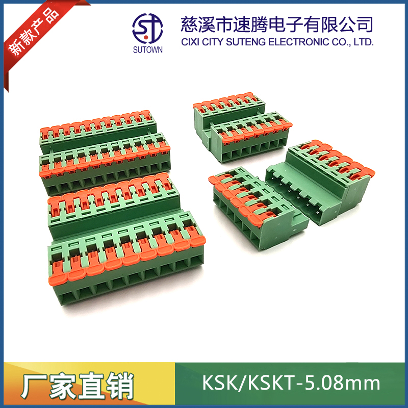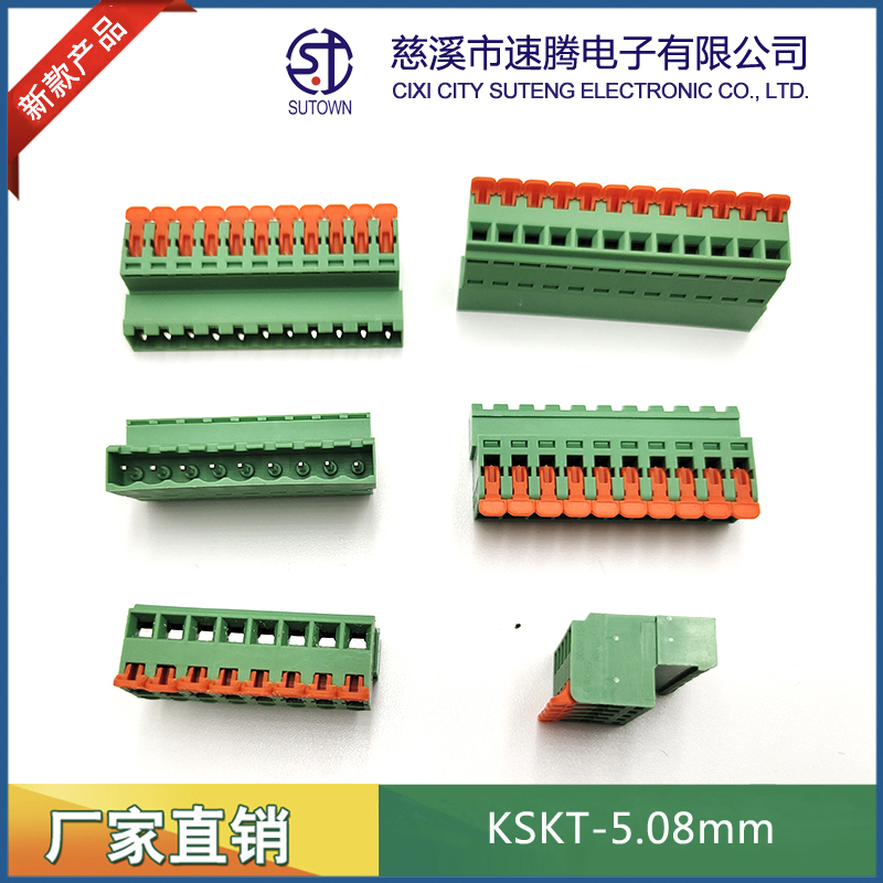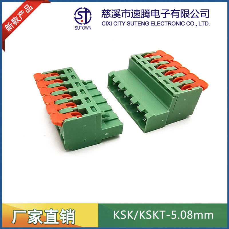 型號:KSKT-5.08mm間距:5.08mm極數:2-24P電氣性能 額定電壓:300V額定電流:15A使用線徑:24-12WG(2.5mm2)環境溫度:-40℃~+105℃瞬時溫度:+250℃,5s耐電壓:AC4000V/Min接觸電阻:20MΩ絕緣電阻:5000MΩ/1000V扭矩:0.4Nm剝線長度:7-8mm材質和電鍍 塑件:PA66,UL94V-0觸點材料:磷青銅,鍍鎳